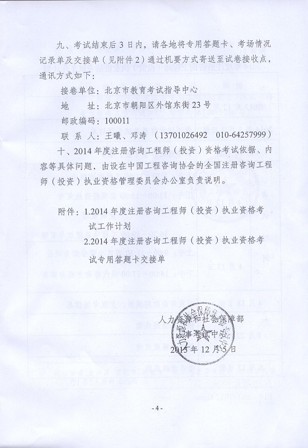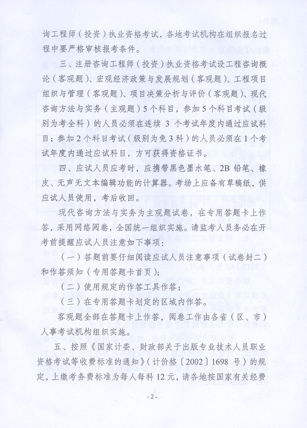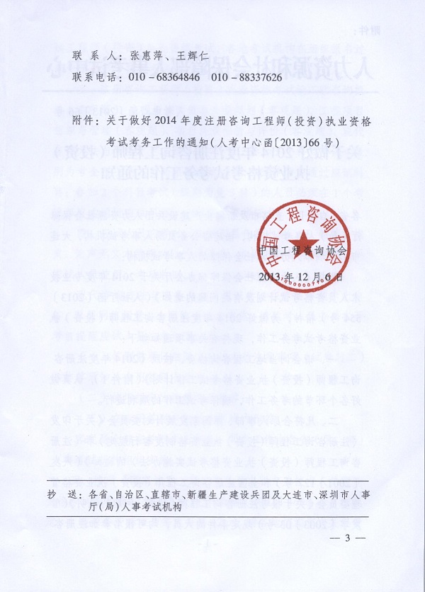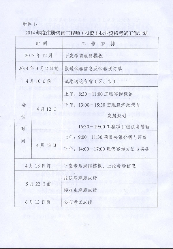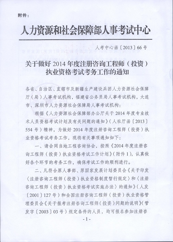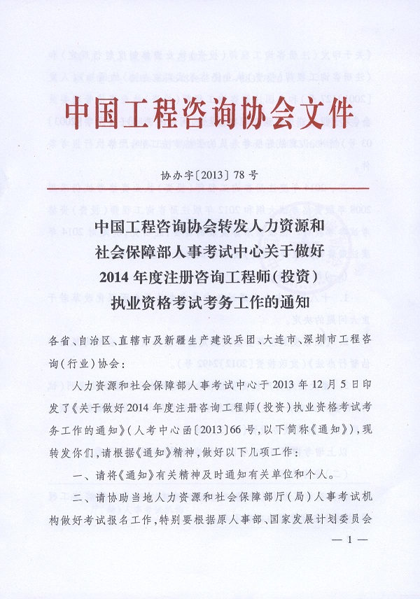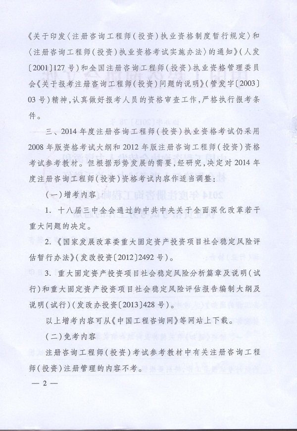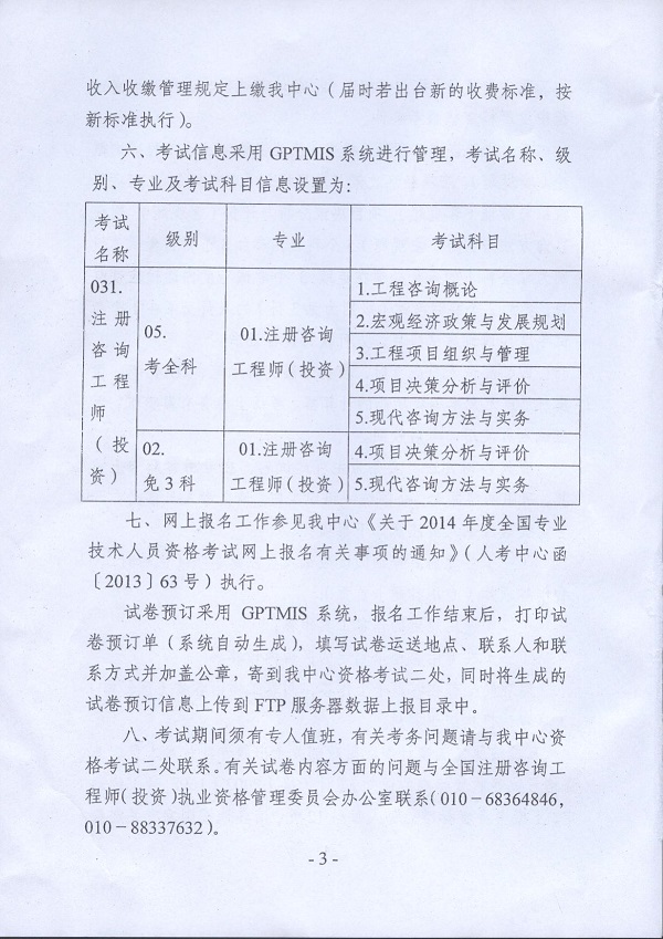 2014年度注冊咨詢工程師(投資)職業資格考試考務工作的通知
