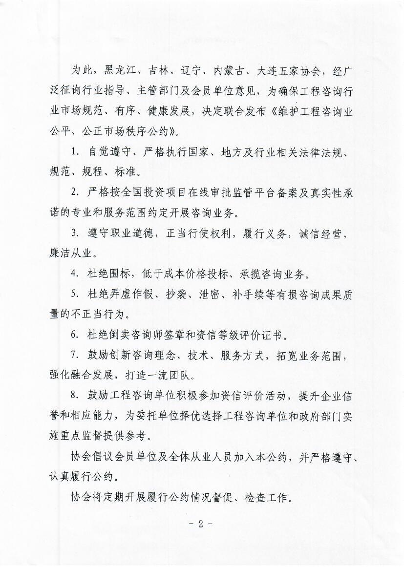 《維護(hù)工程咨詢(xún)業(yè)公平、公正市場(chǎng)秩序公約》