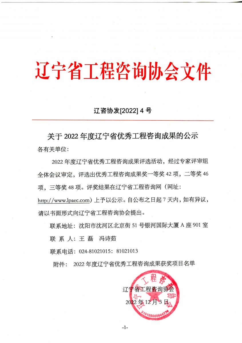 關(guān)于2022年度遼寧省優(yōu)秀工程咨詢(xún)成果的公示