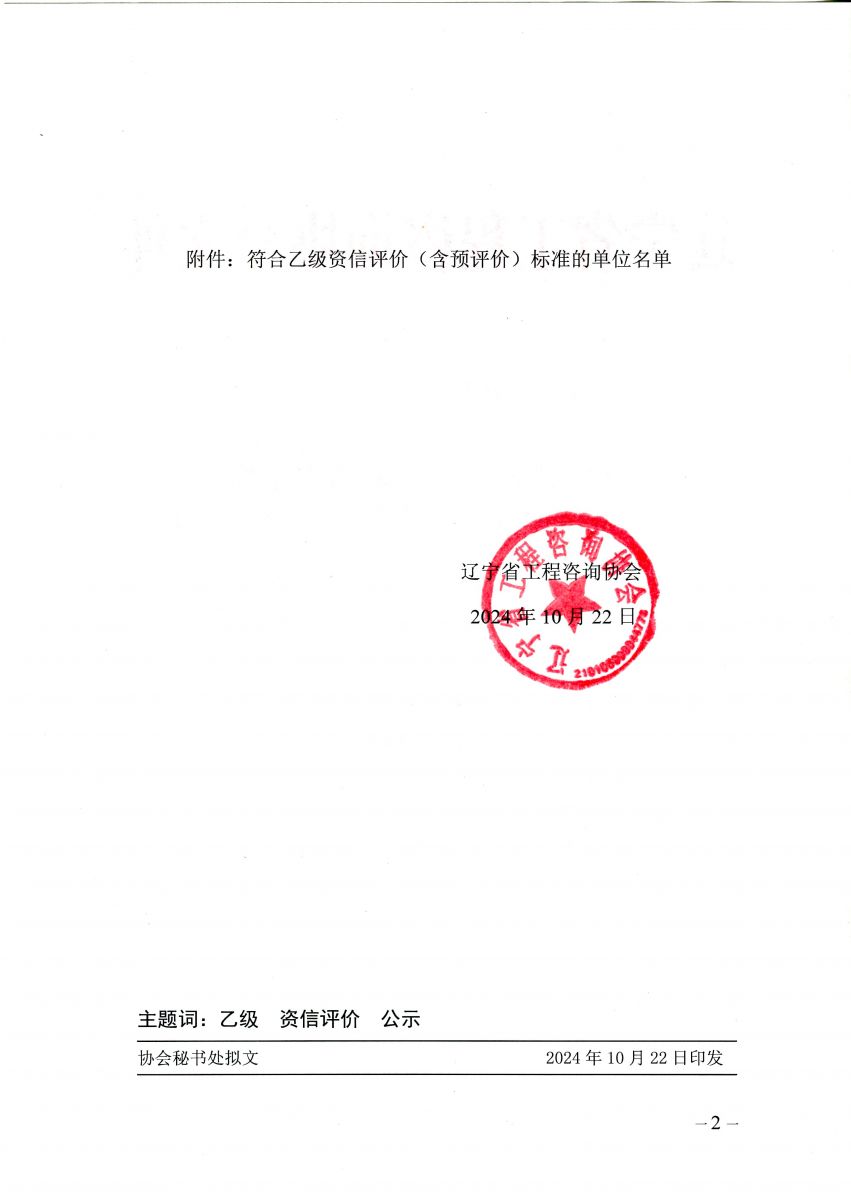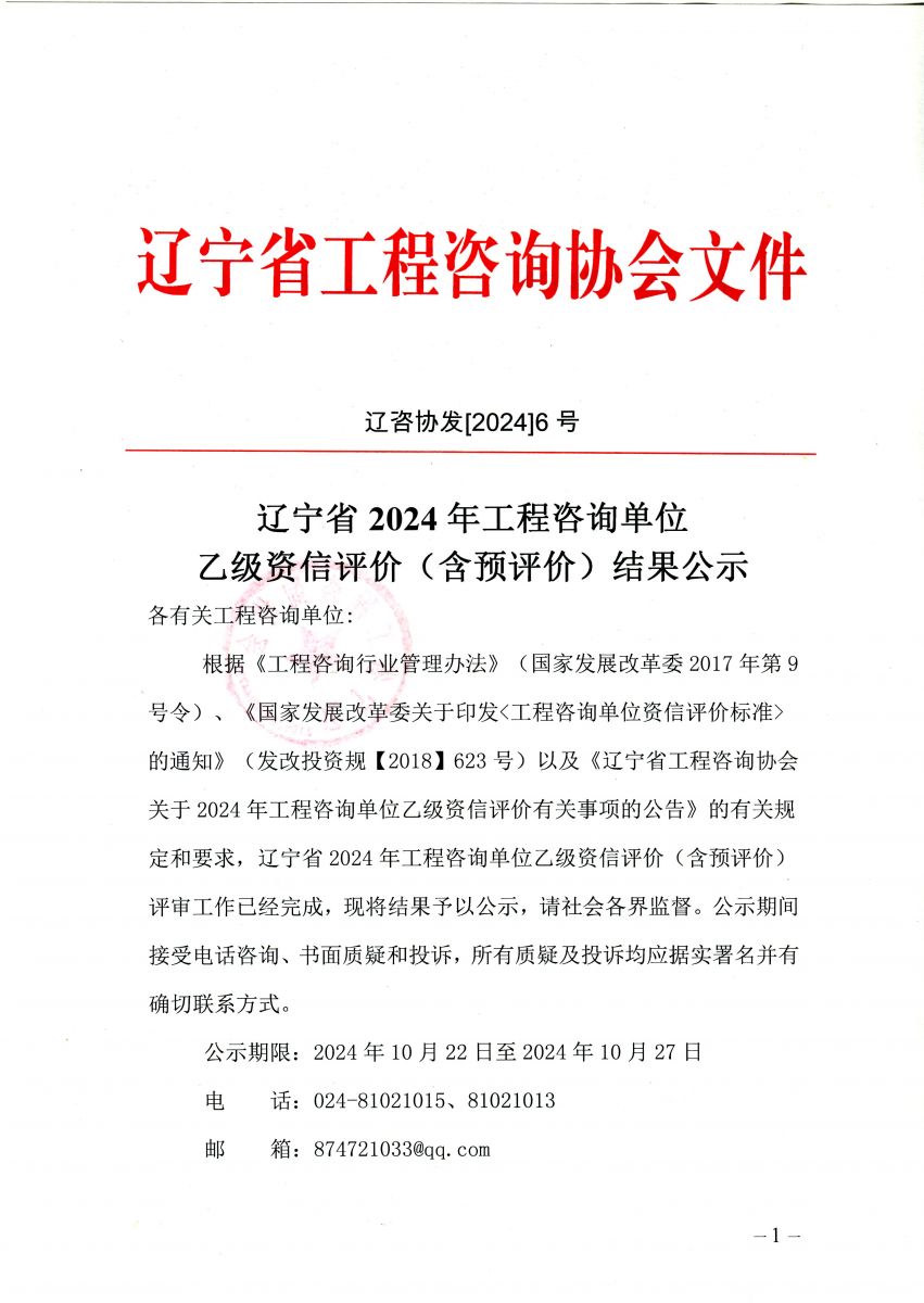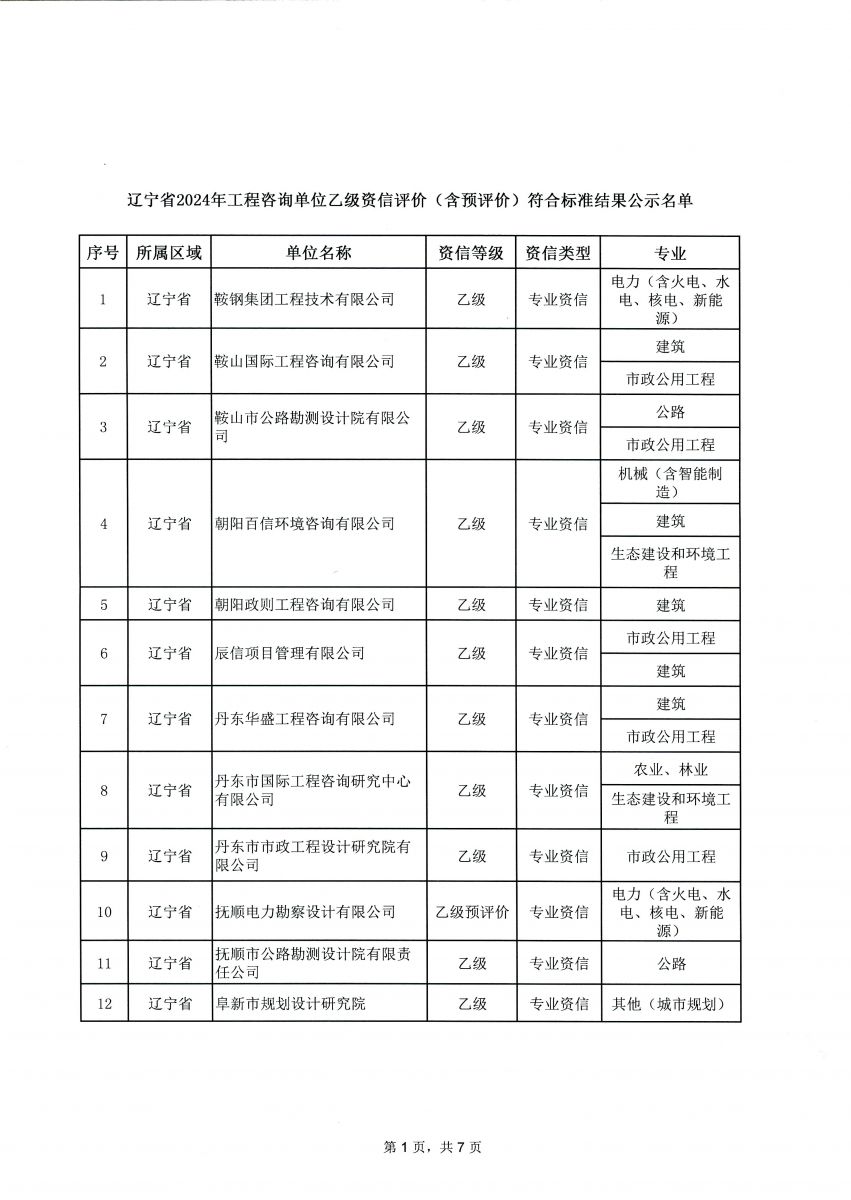 遼寧省2024年工程咨詢單位乙級資信評價(含預(yù)評價)結(jié)果公示
