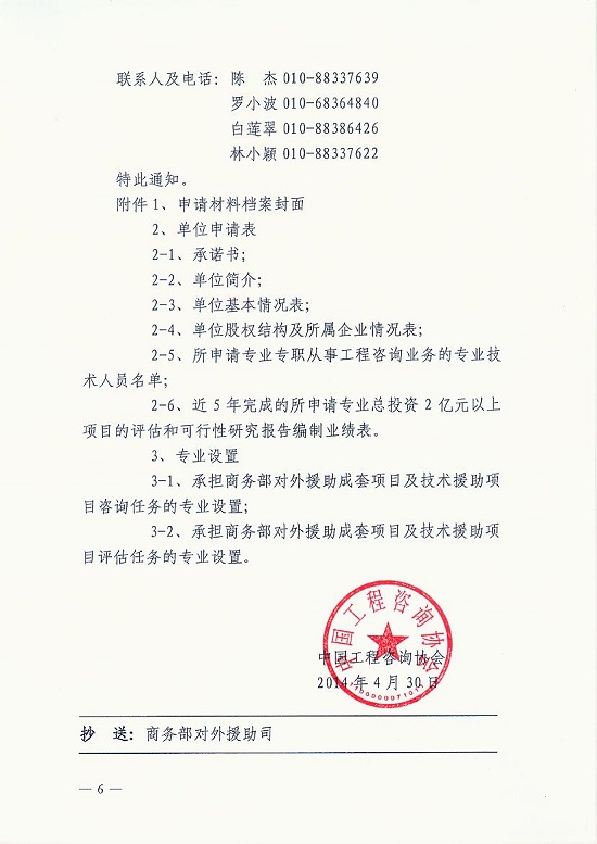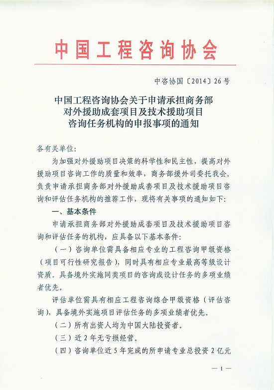 中國工程咨詢協會關于申請承擔商務部對外援助成套項目及技術援助項目推介交流活動的通知