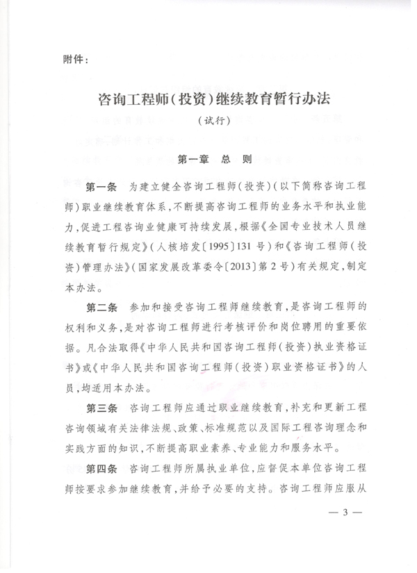 中國工程咨詢協會關于印發《咨詢工程師(投資)繼續教育暫行辦法(試行)》的通知