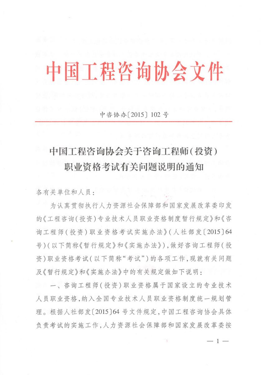 中國工程咨詢協會關于咨詢工程師(投資)職業資格考試有關問題說明的通知