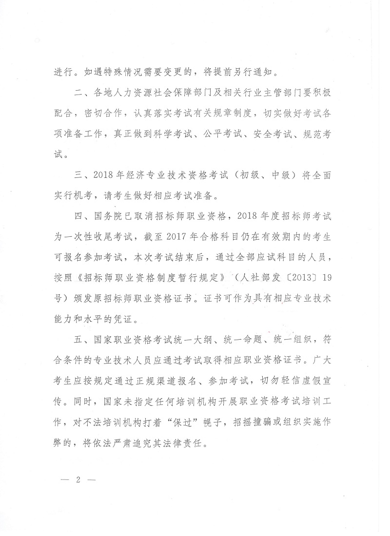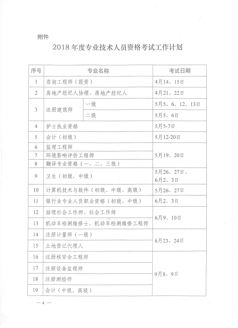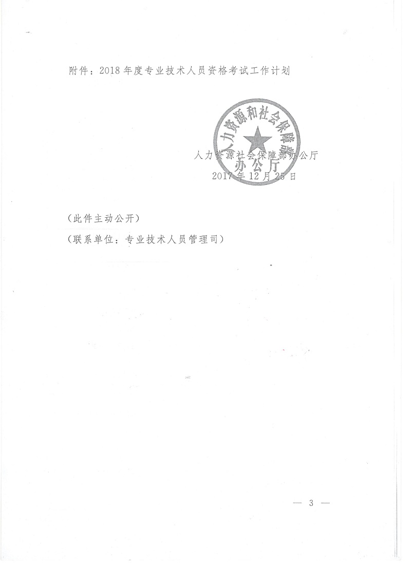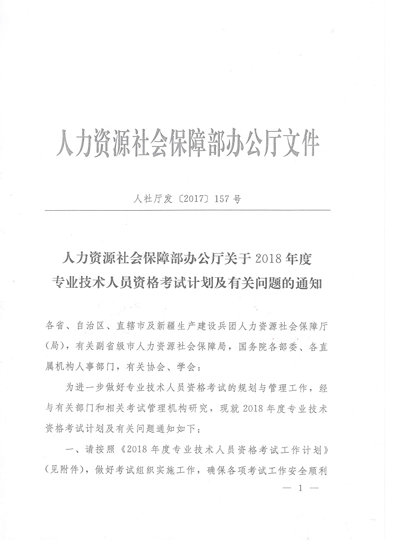 人力資源和社會保障部關(guān)于2018年度專業(yè)技術(shù)人員資格考試計(jì)劃及有關(guān)問題的通知