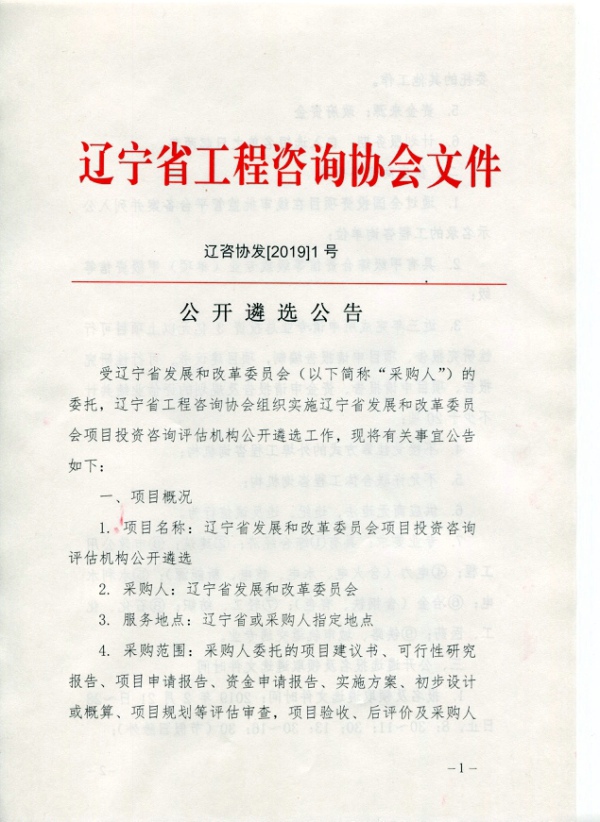遼寧省發展和改革委員會項目投資咨詢評估機構公開遴選公告