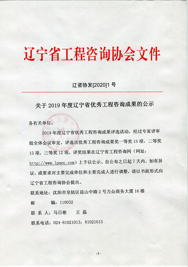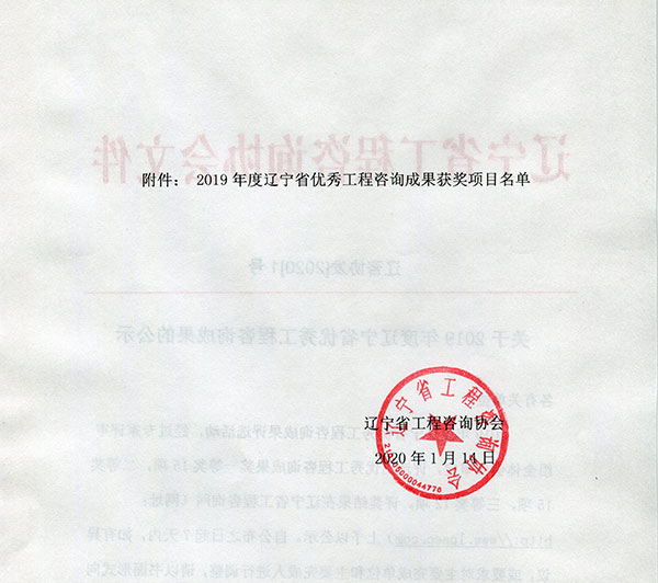 2019年度遼寧省優(yōu)秀工程咨詢成果