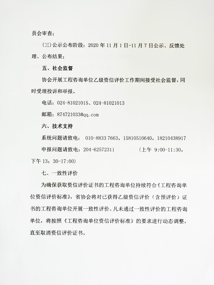 遼寧省工程咨詢協(xié)會關于2020年 工程咨詢單位乙級資信評價有關事項的公告