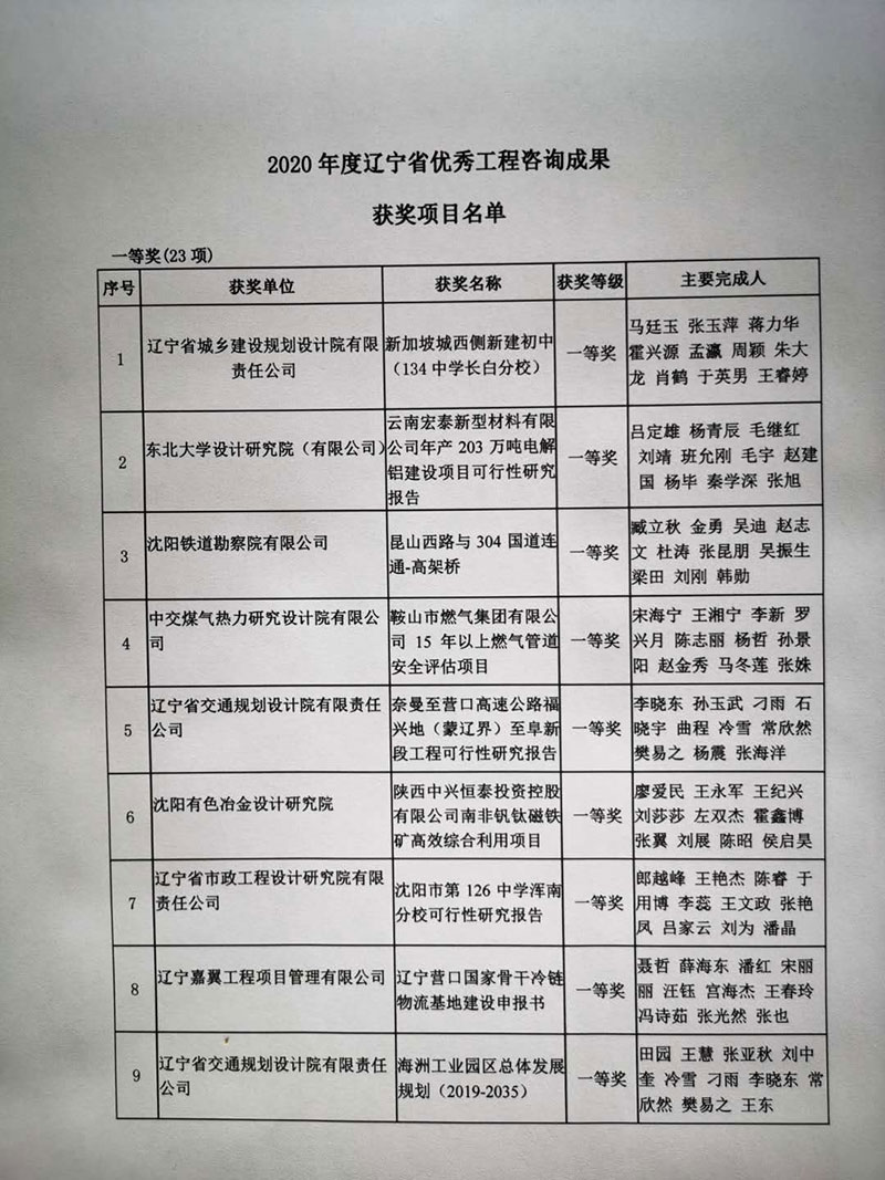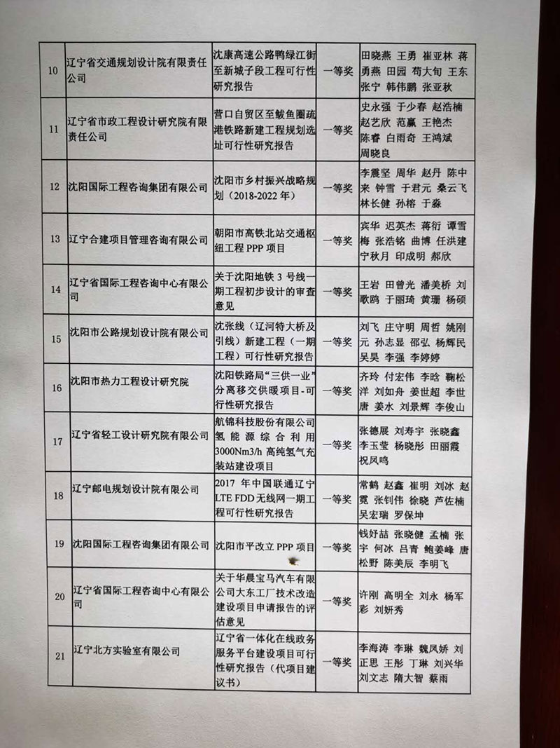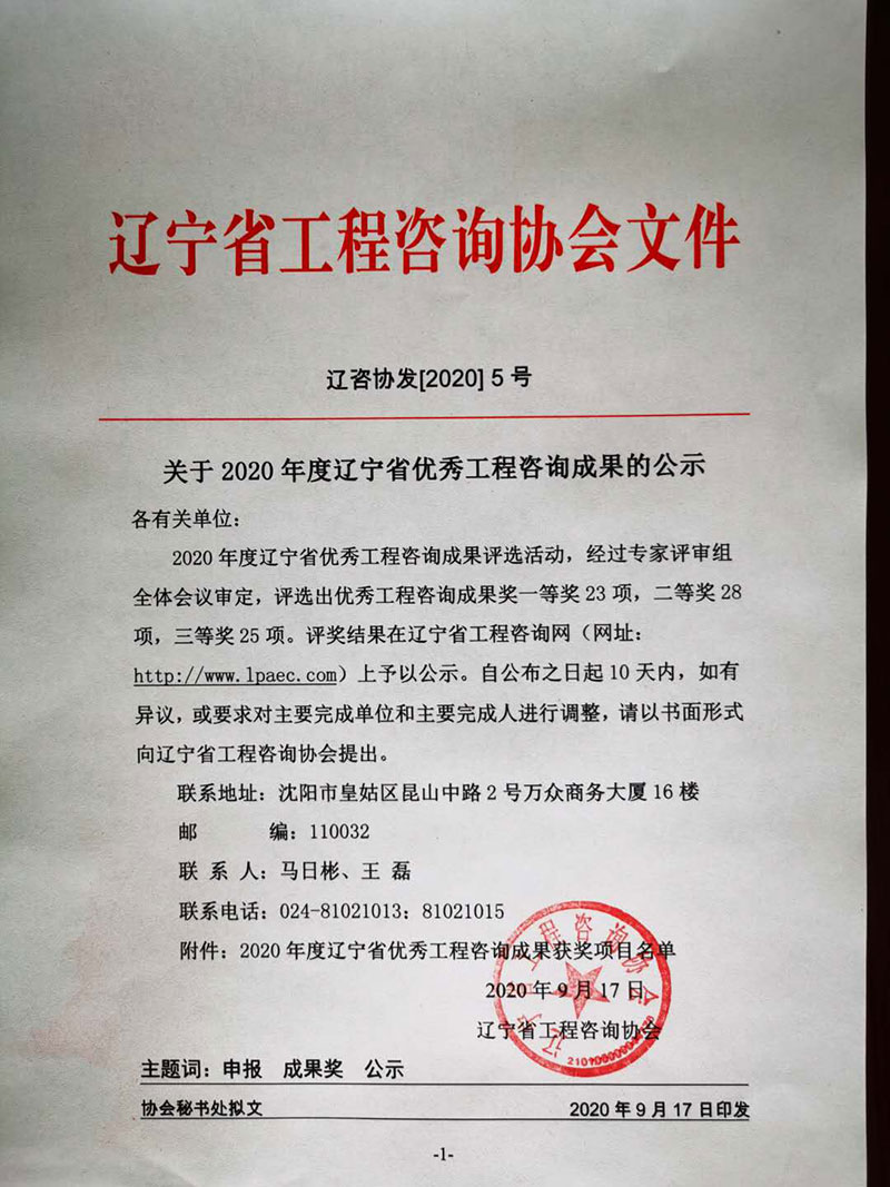 關(guān)于2020年度遼寧省優(yōu)秀工程咨詢成果的公示
