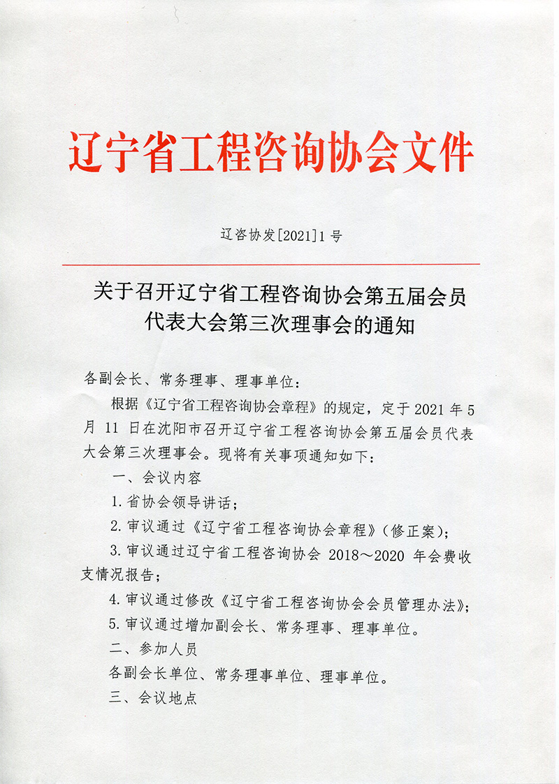 關于召開遼寧省工程咨詢協會第五屆會員代表大會第三次理事會的通知